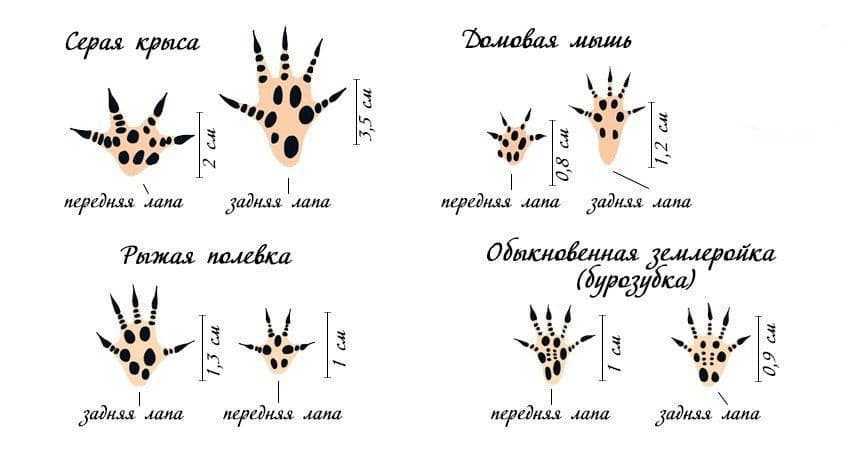 Отпечатки лап грызунов тоже очень похожи, отличаются они в основном размерами.