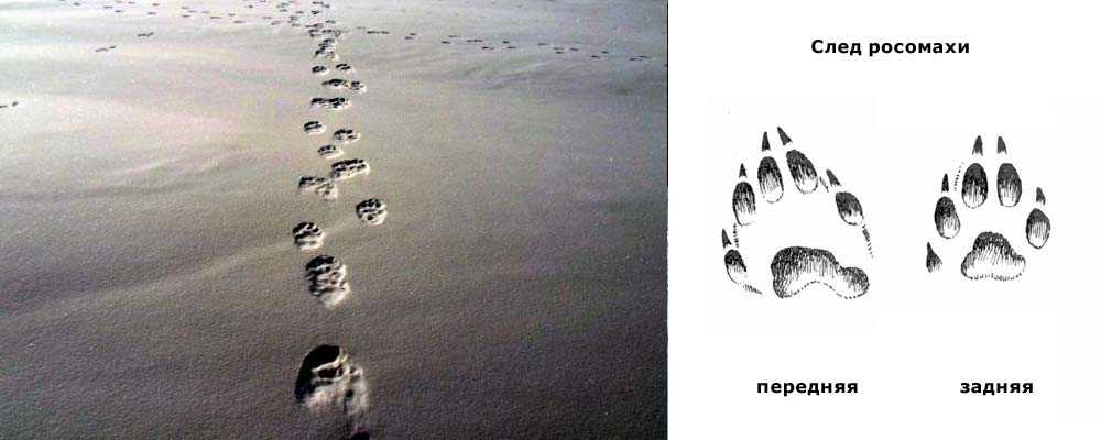 Следы росомахи спутать с чьими либо другими сложно. Передние и задние лапы имеют пять пальцев. Длина отпечатка передней лапы около 10 см, ширина 7-9 см.