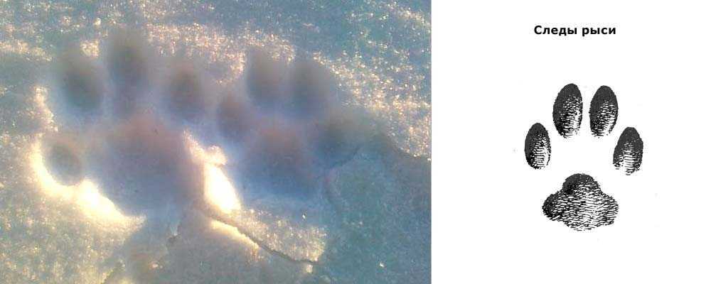 Размер следа передних лап взрослых особей около 8 см в длину и столько же в ширину, задних лап чуть меньше. Длина размеренного шага рыси около 60 см у самцов и 45 см у самок. У молодняка шаг короче, но за матерью они идут гуськом, стараясь попасть след в след.