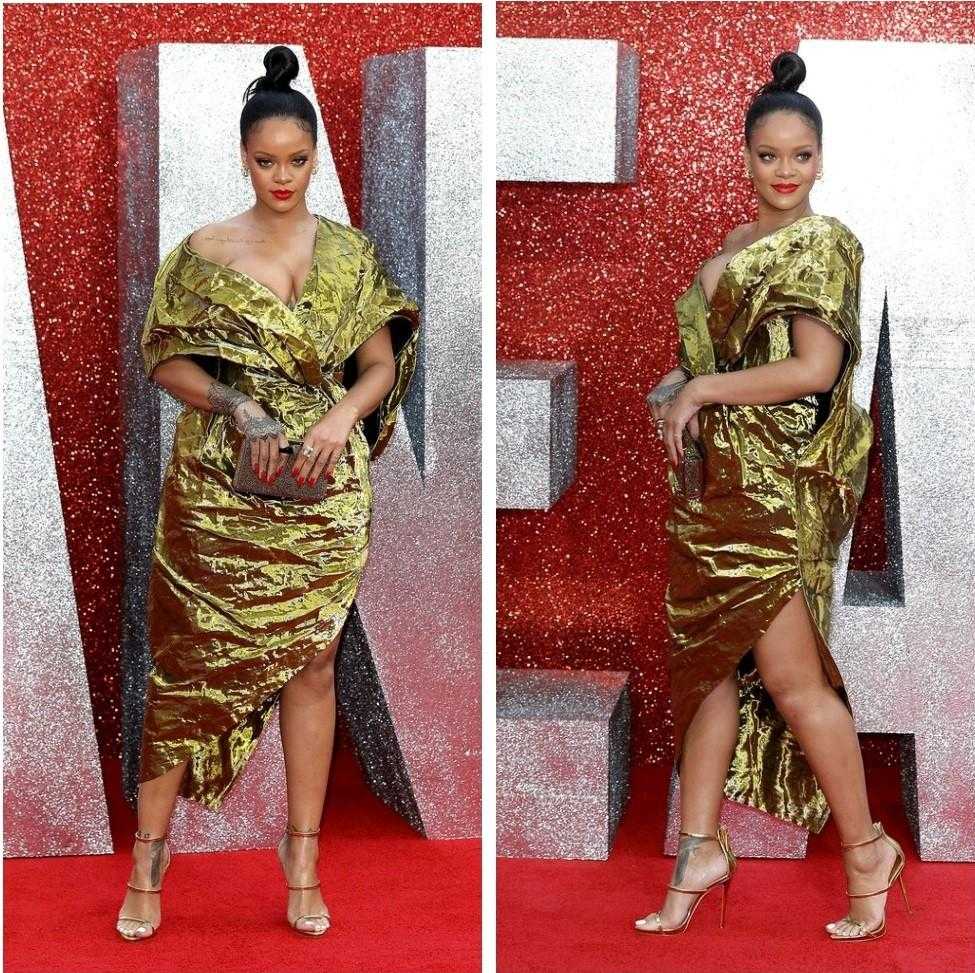 Например, никто не ожидал увидеть звезду в платье, сделанном словно из фольги и напоминающим обёртку от конфетки, но именно в таком Рианна появилась на премьере «8 подруг Оушена», наделав много шума.