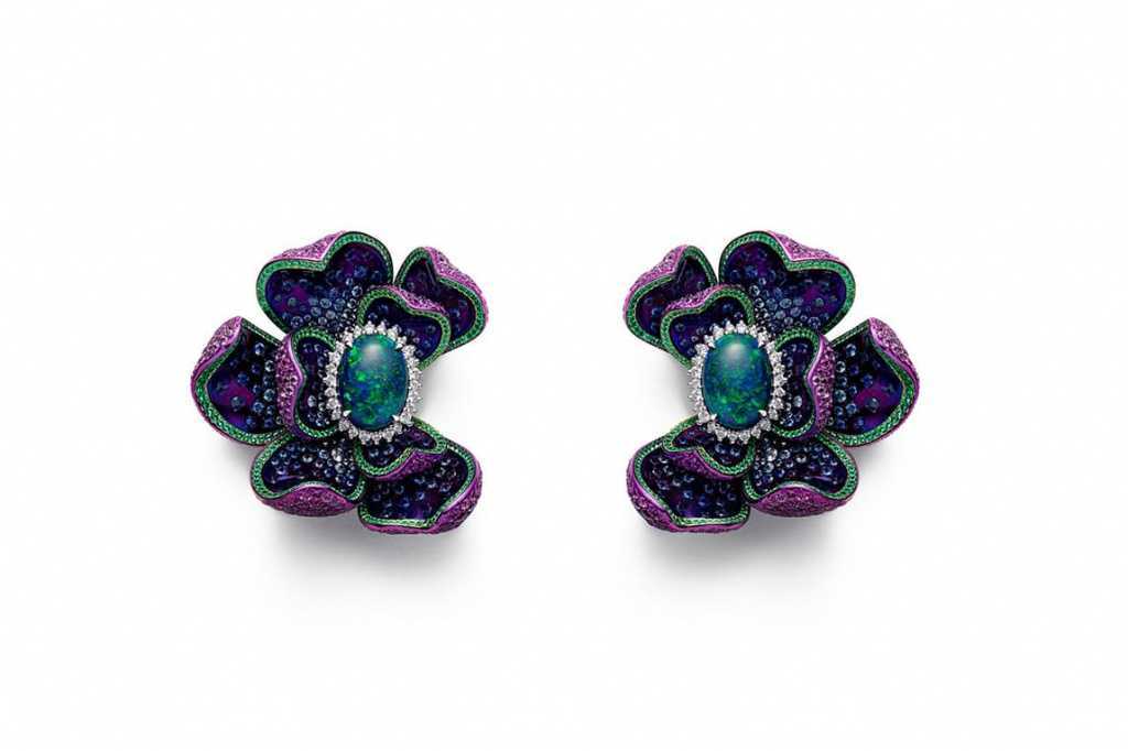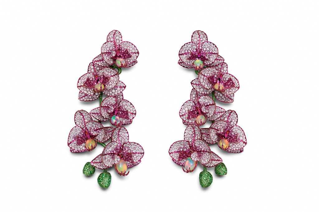 Серьги Orchid Suite» Chopard из коллекции Red Carpet 2019 из титана с опалом, цаворитами, сапфирами и бриллиантами