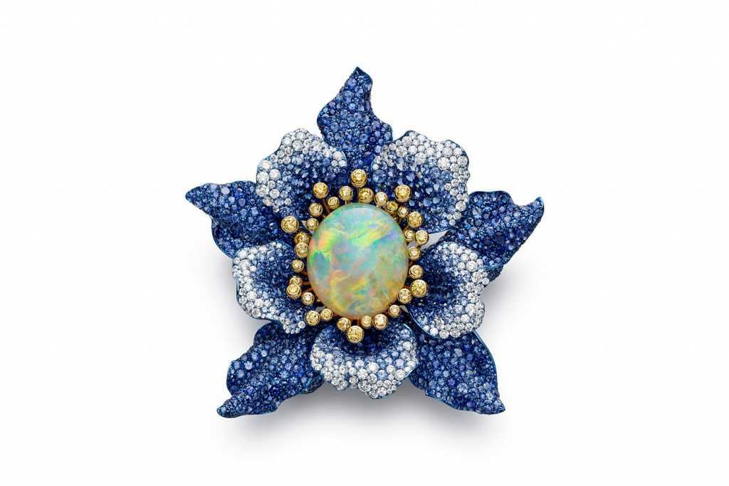 Брошь «Delicate» Chopard из коллекции Red Carpet 2019 с опалом, сапфирами, желтыми и бесцветными бриллиантами