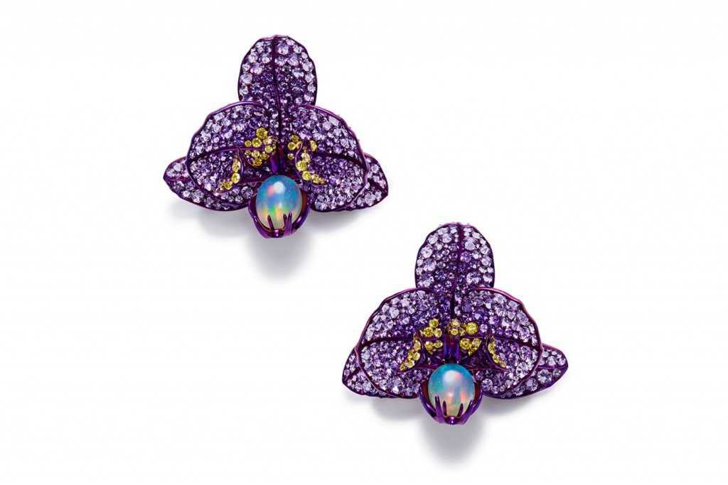 Серьги Orchid Suite» Chopard из коллекции Red Carpet 2019 из титана с опалом, сапфирами и аметистами