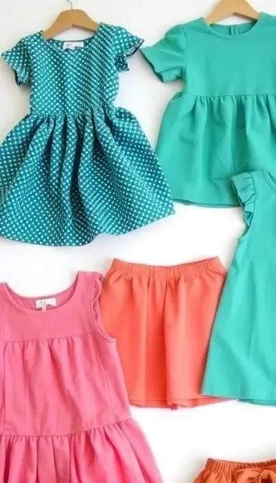 - Деним: Джинсовые куртки, брюки, шорты и платья – деним остается одним из самых популярных материалов в детской моде.