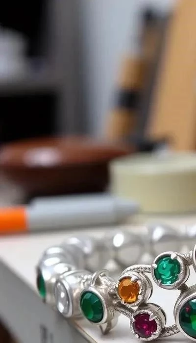 - Для повседневного стиля: Небольшие кольца из серебра и браслет с яркими камнями.