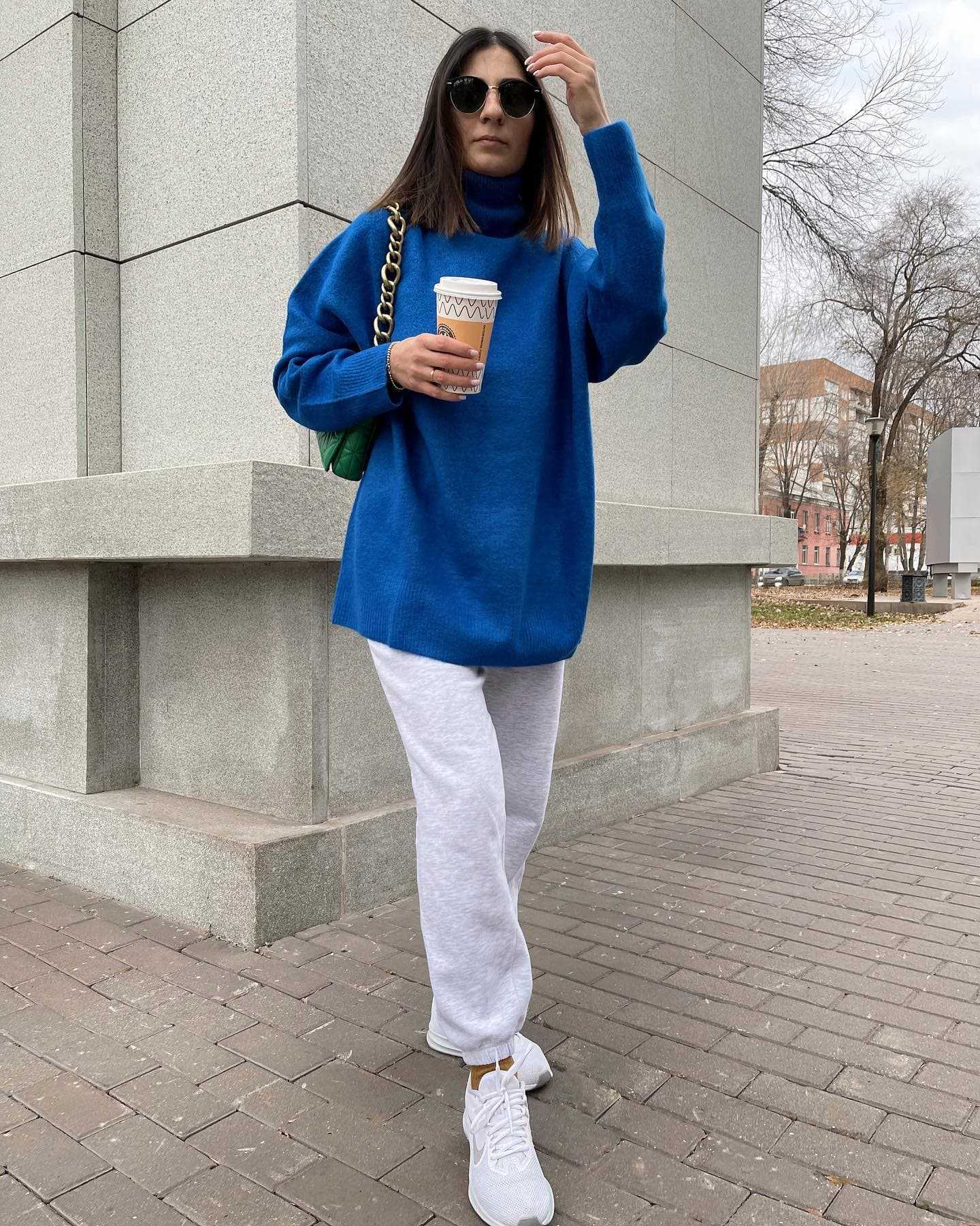 Кроме прочего, зимой никто не отменяет выходы на работу и в свет. Офисный стиль можно воплотить, приобретя трикотажное платье до середины колена нейтрального оттенка или прямые теплые брюки в сочетании с гольфом и пиджаком.