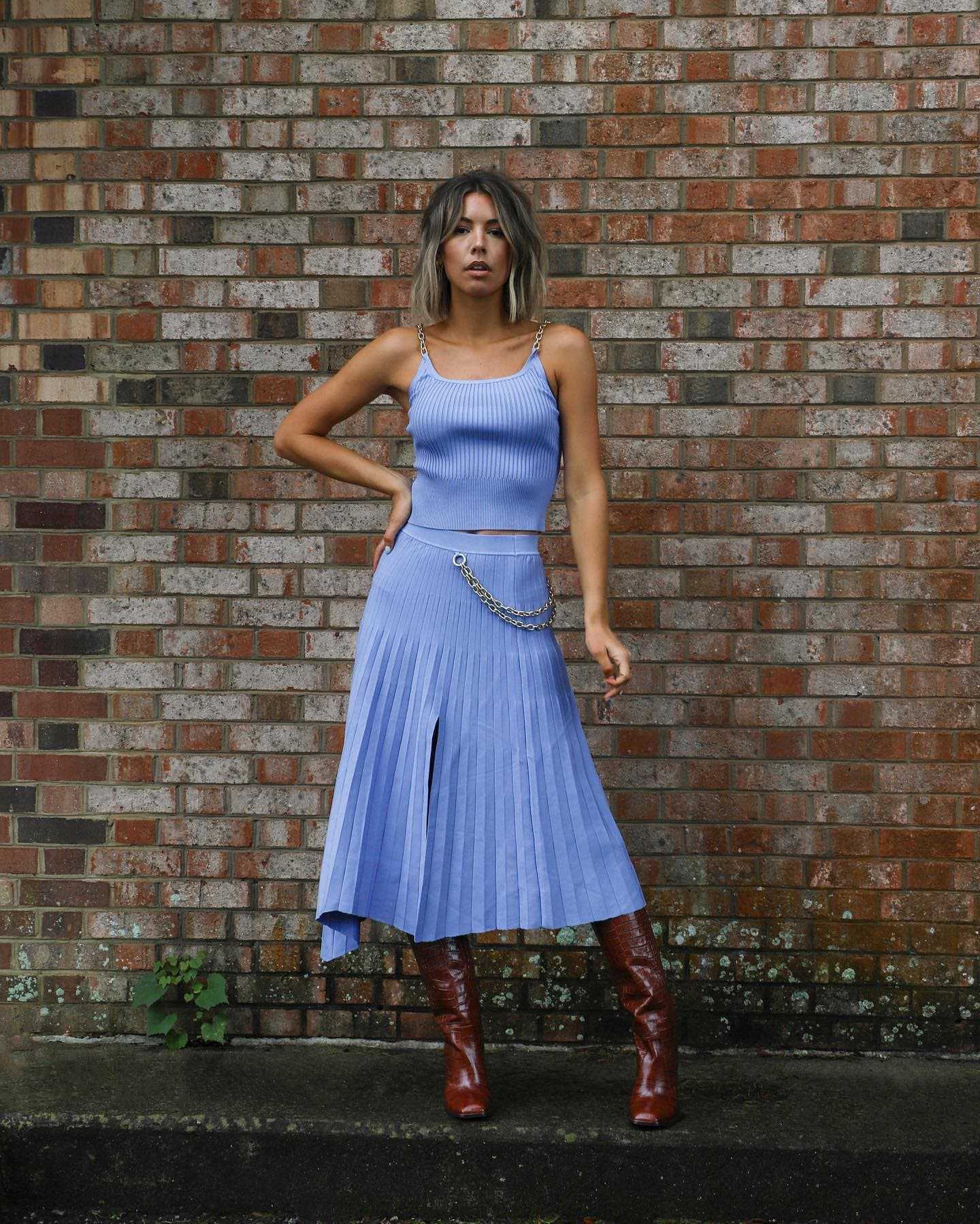 Ярко-синий, глубокий, насыщенный оттенок. Вызывает прямую ассоциацию с Миконосом — греческим городом, который часто выбирают для тусовочного отдыха. В образах Mykonos Blue передает то же яркое, драйвовое и легкое настроение, поэтому лучше всего сочетать вещи этого оттенка с коричневой, зеленой и кремовой гаммой — в зависимости от того, какой эффект хочешь создать.