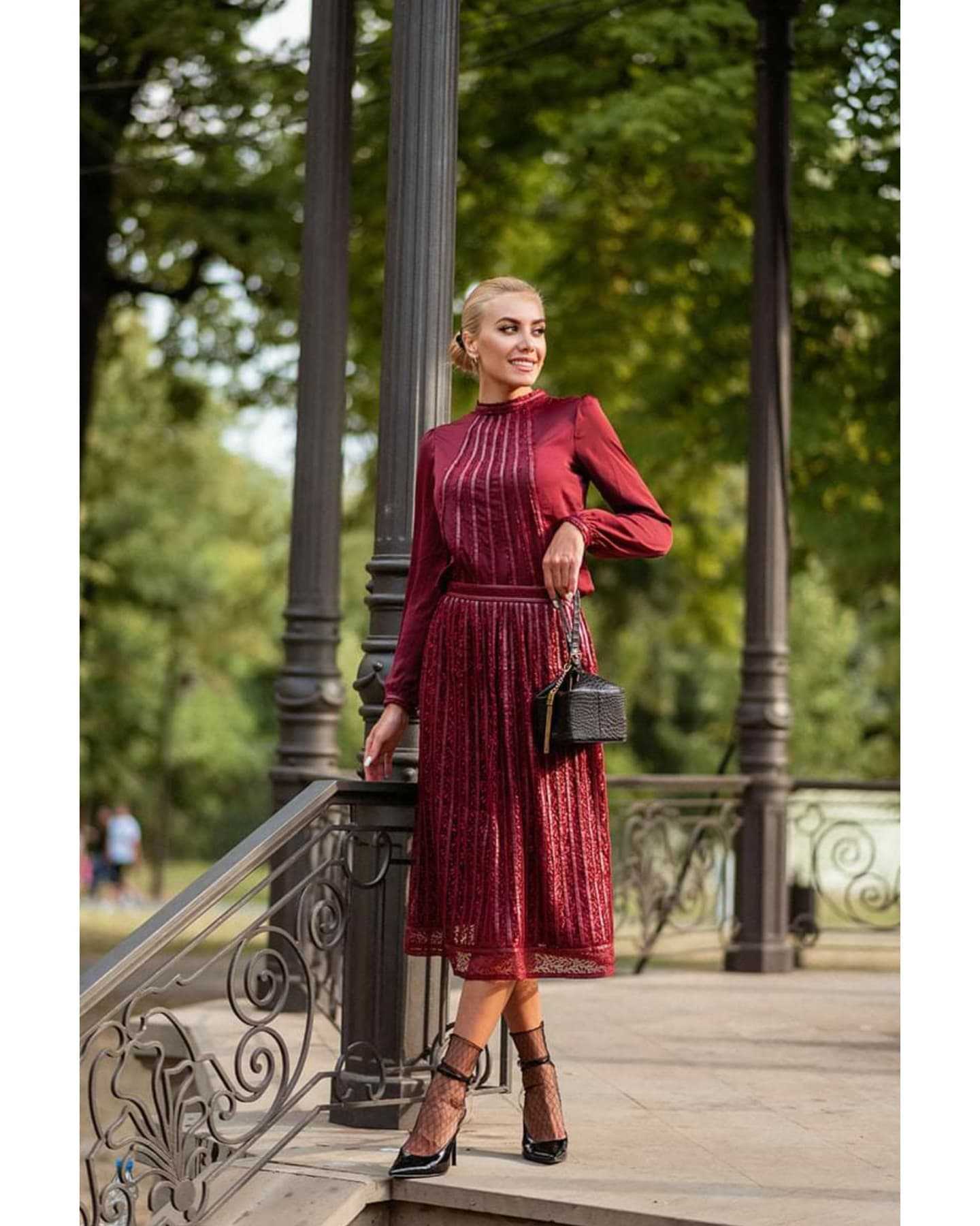 В первую очередь необходима юбка в форме карандаша. Она всегда выгодно смотрится на фигуре, уместна как в офисе, так и на любой встрече, придает элегантности образу. Помимо этого, можно поэкспериментировать с небольшим клешем до середины колена. Поскольку на улице осень, то ткани должны быть теплыми, но следует избегать вязаных вариантов, лучше выбрать плотный трикотаж, шерсть или драп.