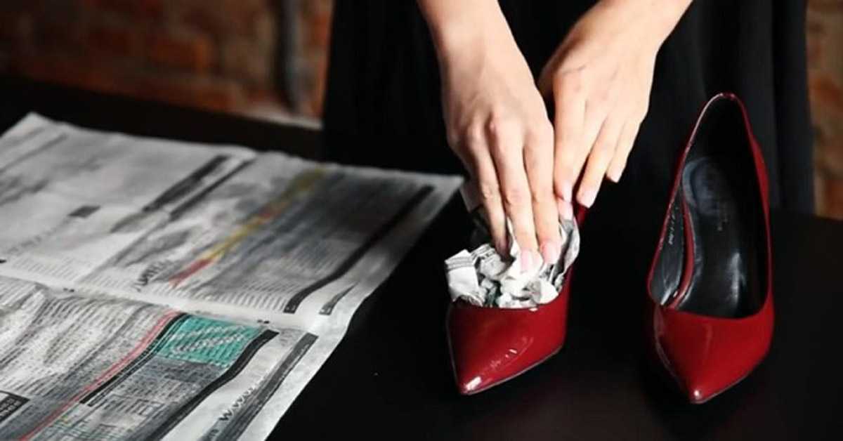 При этом мокрая утрамбованная бумага начинает естественным образом высыхать не меньше чем через два-три дня, стельки и поверхность обуви сильно размокают и в результате этого деформируются. Такой метод имеет больше недостатков, чем достоинств, поэтому на сегодняшний день его точно нельзя отнести к эффективному.