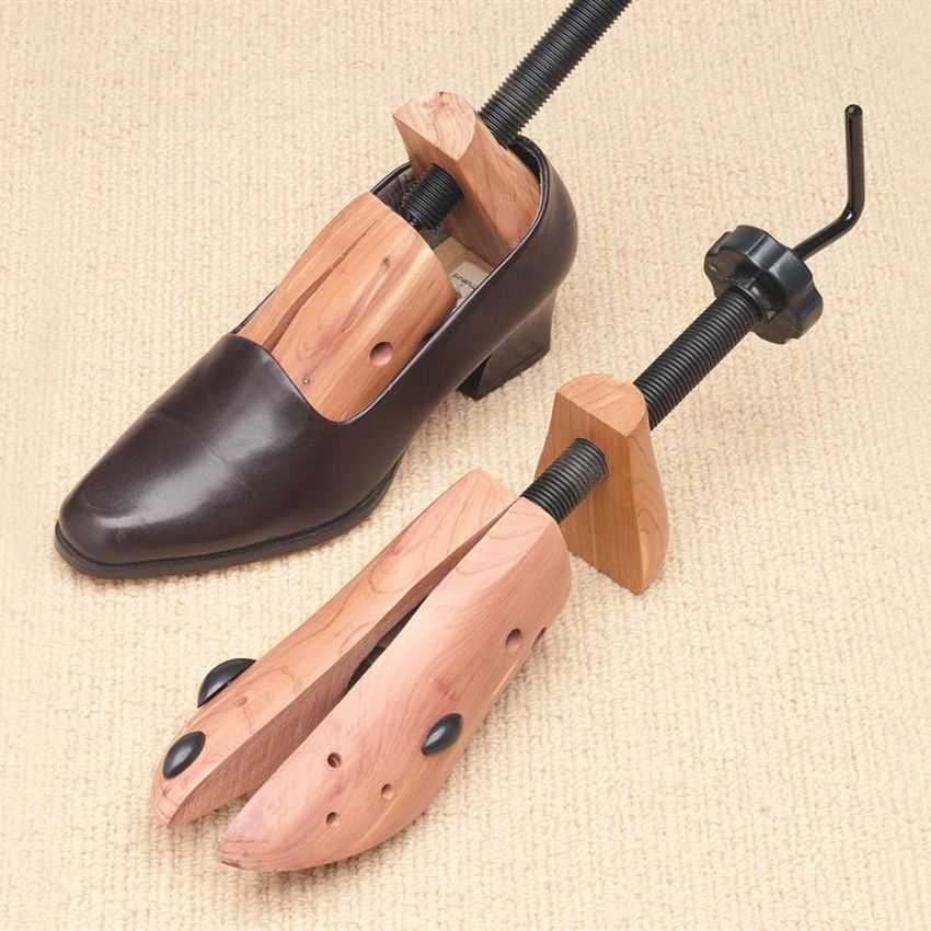 В обувной мастерской или специализированном магазине можно приобрести специальные деревянные или пластмассовые колодки для растяжки обуви, регулируемые с помощью винтов. Они расширят узкие туфли или ботинки на 2-4 мм, а длину при необходимости увеличат на один размер. В комплекте есть небольшие прорезиненные вставки, позволяющие воздействовать на конкретные места. Это существенно облегчает жизнь людям с нестандартной стопой, например, с вальгусной деформацией или мозолями.
