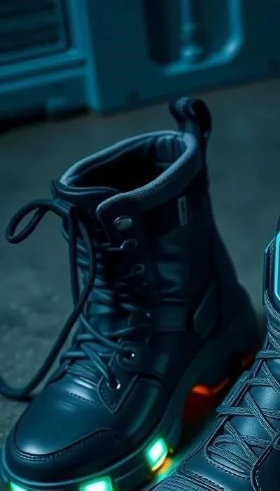 - Обувь: Массивные ботинки на платформе, кроссовки с футуристичным дизайном, высокие сапоги.