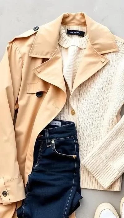 Нейтральные цвета, такие как бежевый, серый, хаки и черный, остаются в тренде. Они легко сочетаются друг с другом и позволяют создавать стильные и универсальные образы. Пример образа: бежевый тренч, серые брюки, черная водолазка и белые кеды.