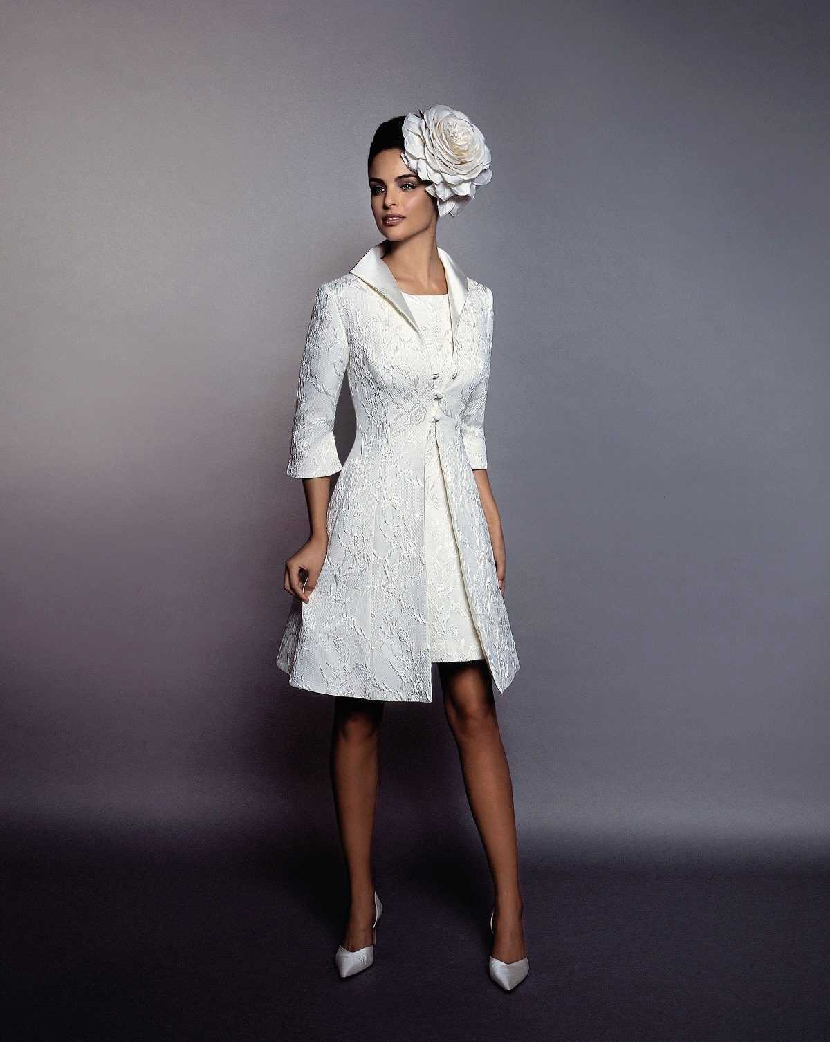 Все наряды выполнены женственно, в классической свадебной палитре. Они создают изысканный, утонченный женственный силуэт, который часто подчеркивается кружевной отделкой.