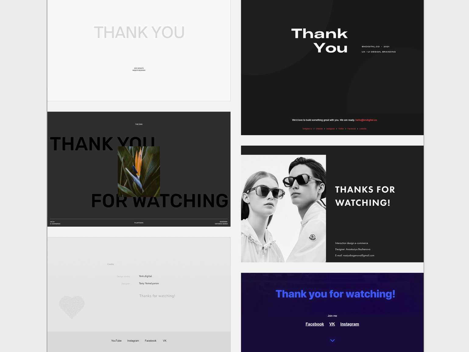 Блок благодарности обычно находится в самом конце кейса. Как правило, это большая надпись: «Спасибо за просмотр» или что-то похожее. Часто этот и предыдущий блок объединяют в один.