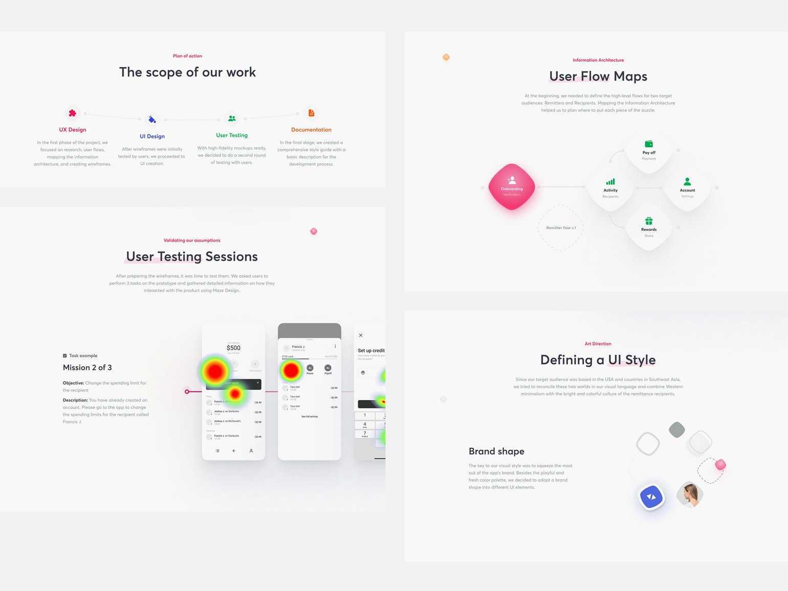 Блоки Behance-кейса, описывающие процесс UX-проектирования. Скриншот: Netguru Team / Behance