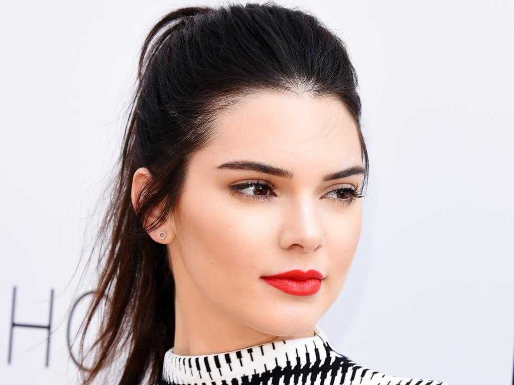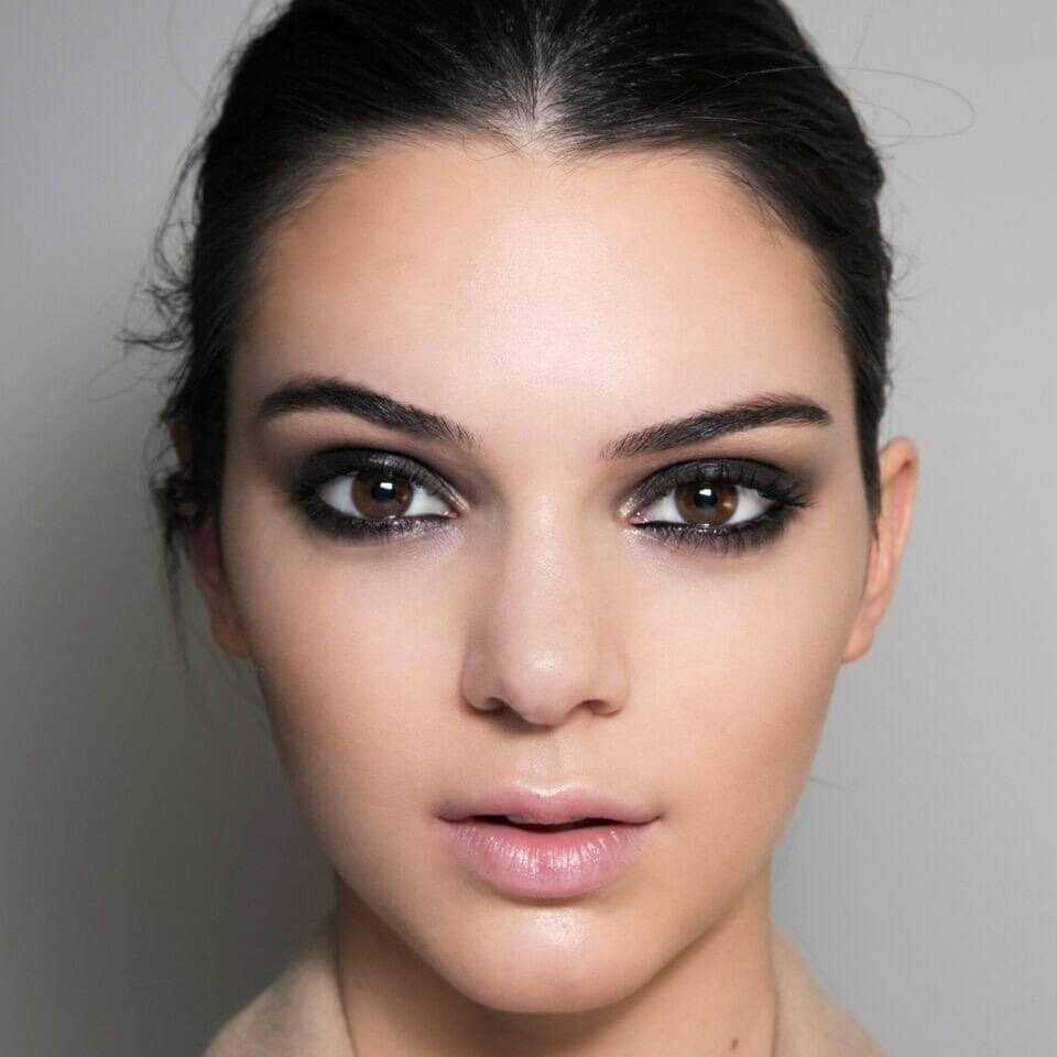 Кендалл не использует плотные слои теней, румян или тонального крема — лишь легкий макияж с яркими акцентами. Чаще всего это аккуратная стрелка, которая подчеркивает верхнюю линию роста ресниц, либо же растушеванная линия.