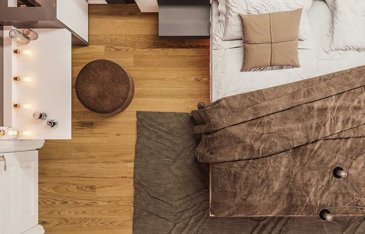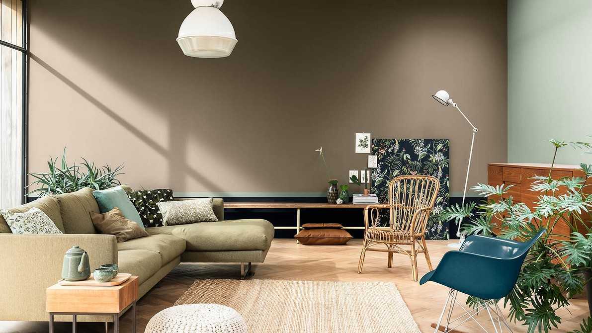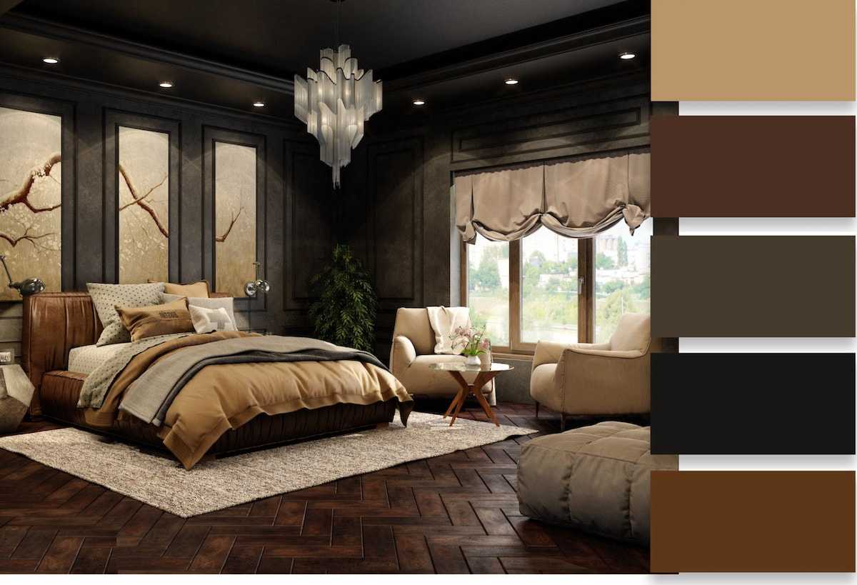 Глубокие, насыщенные тёмно-зелёные, коричневые и синие краски будут уместны в просторной комнате. Дополняйте их дорогими фактурами: бархатом, кожей, деревом и натуральным камнем.