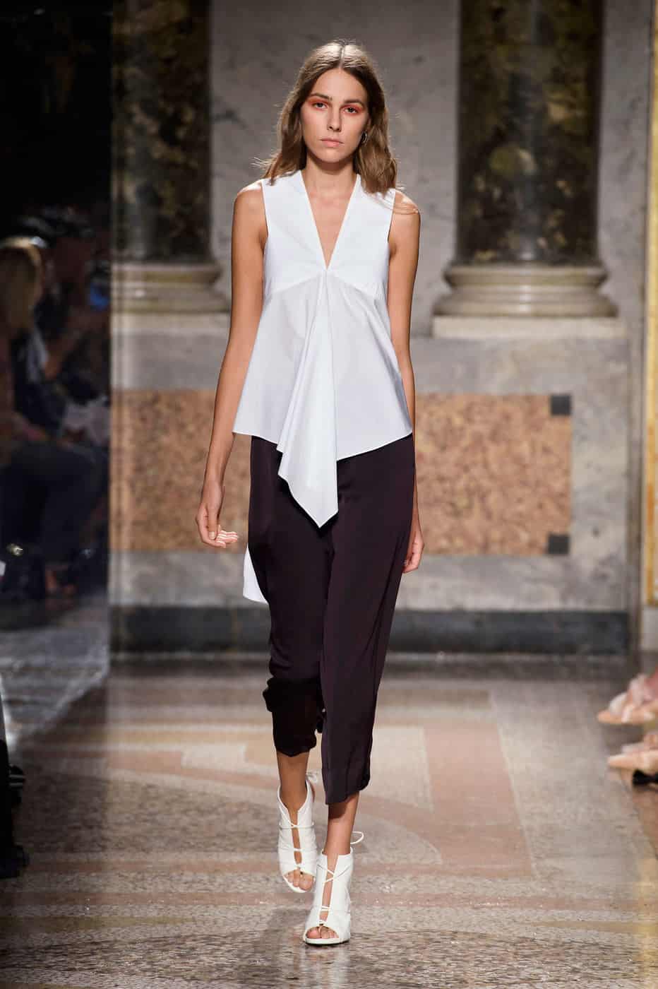 Девушкам с фигурой перевернутый треугольник подходят блузы, которые не подчеркивают широкие бедра и красиво очерчивают грудь и талию. Несмотря на небольшой размер груди, вам подойдут блузы с декольте, включая радикальные варианты. На маленькой груди большие вырезы никогда не выглядят вульгарно, но всегда добавляют женственности и элегантности.