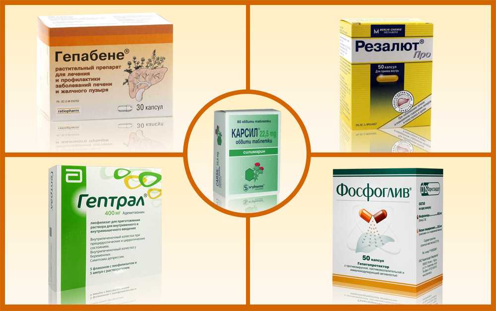 - гепатопротекторы. К ним относятся эссенциальные фосфолипиды (Резалют про, Фосфоглив). Они защищают клетки печени от негативного влияния окружающих факторов и укрепляют их стенку путем встраивания в мембрану. Помимо этого, они замедляют процесс замещения гепатоцитов соединительной тканью. Сюда же относятся растительные лекарства (Карсил, Гепабене), производные аминокислот (Гептрал, Гепа мерц), а также медикаменты на основе урсодезоксихолевой кислоты (Урсосан);