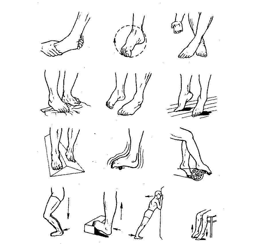 - Лечебная физкультура. С первых же дней начинают движение в голеностопном суставе – сгибание в сторону подошвы. На 5-7-й день начинают более активный комплекс гимнастики.
