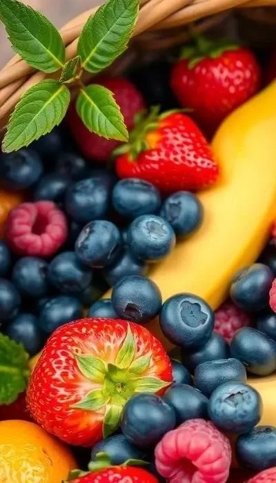 - Фрукты: Бананы, яблоки, груши, манго, ананасы, ягоды (клубника, малина, черника) – источник витаминов, минералов и клетчатки.