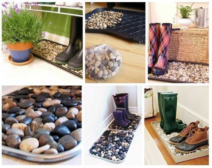 4. В дождливое время года для того, чтобы обувь не пачкала пол и не скапливалась грязь, ставьте ее в обувную коробку, заполненную речными камнями или мелкой галькой.