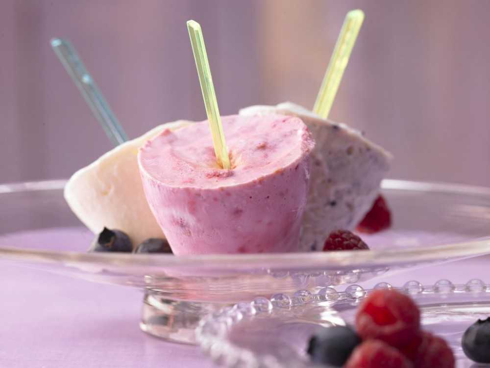 3. Для изготовления домашнего мороженого понадобится йогурт и деревянная палочка. Палочку вставьте в стаканчик сквозь фольгу и отправьте в морозильную камеру.