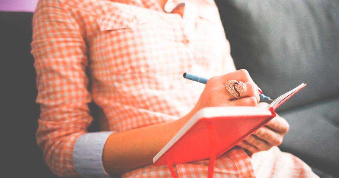 Рука пишет в красной книжке