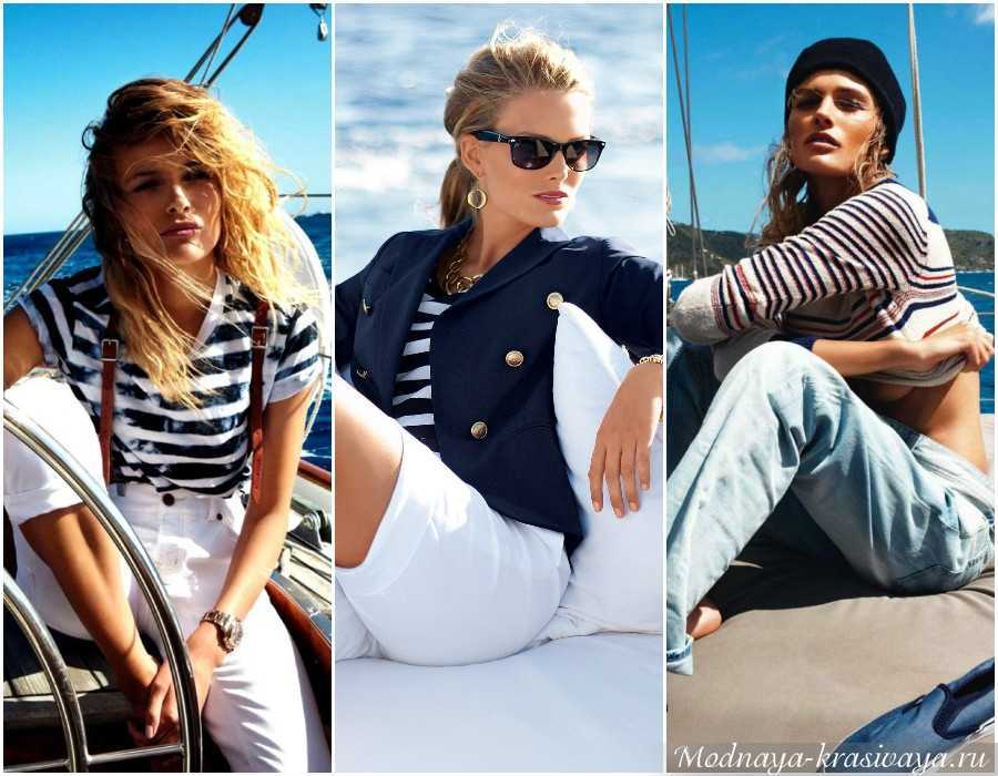 Во всем своем разнообразии представлена одежда в морском стиле для женщин на фото ниже: