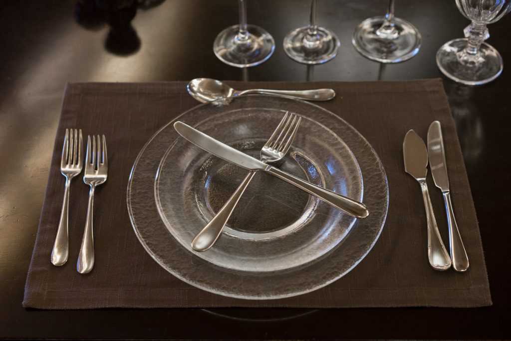 - Приборы и посуду всегда располагают по порядку подачи блюд, согласно тому, что вы собираетесь использовать в первую очередь.