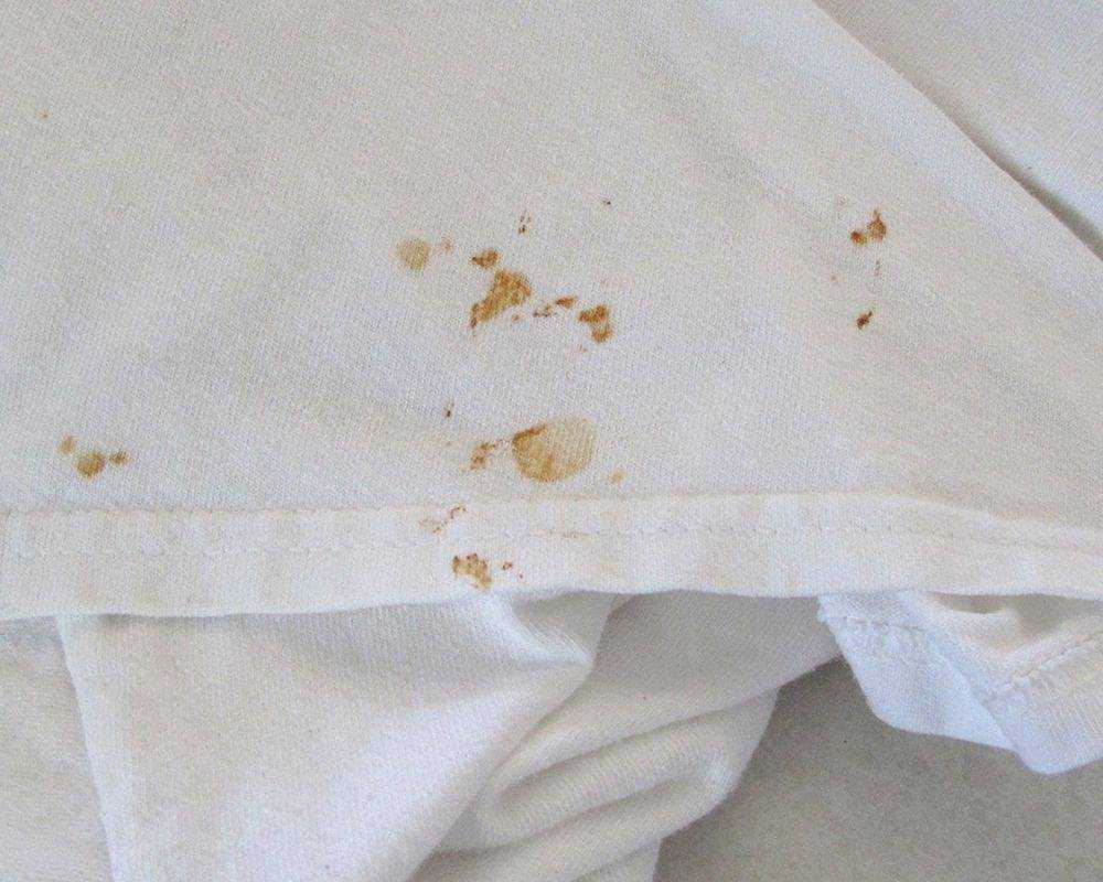 - Ржавчину с белых вещей категорически запрещено удалять при помощи отбеливателя. Замачивание приводит к общему пожелтению материала.