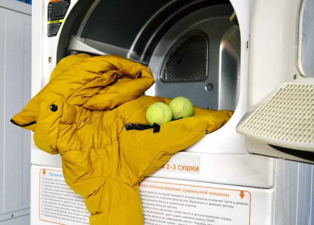Стирать пуховик в стиральной машине можно с теннисными мячиками