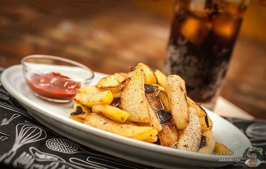 Калорийность… ну, да, цифра не очень приятная. В 100 г жареной картошки в среднем прячется 300 кКал. Впрочем, все хорошо в меру – и если не съедать ведро картофеля за раз, считаю, пользы такой ужин принесет больше, чем вреда, при этом предлагаю не забывать про невероятное гастрономическое удовольствие и считать его весомым аргументом «за».