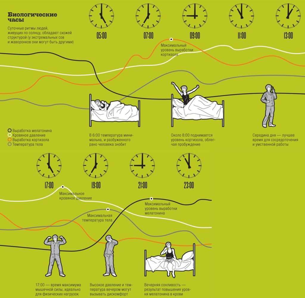 Циркадный ритм подскажет, когда лучше заниматься спортом, когда работать, а когда пора отдохнуть. Прислушиваясь к этим советам, любая деятельность будет даваться легче и значительно увеличится эффективность.