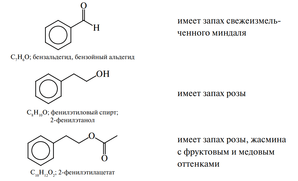 Сложный химический состав ароматизаторов, включающий компоненты различной природы, формирует разнообразные запахи. Остановимся на некоторых наиболее важных компонентах.